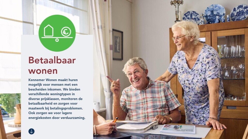 Al onze duurzaamheidsmaatregelen voeren we zonder huurverhoging uit. Kennemer Wonen is hierin altijd onderscheidend geweest. Zo houden we het wonen betaalbaar voor onze huurders.