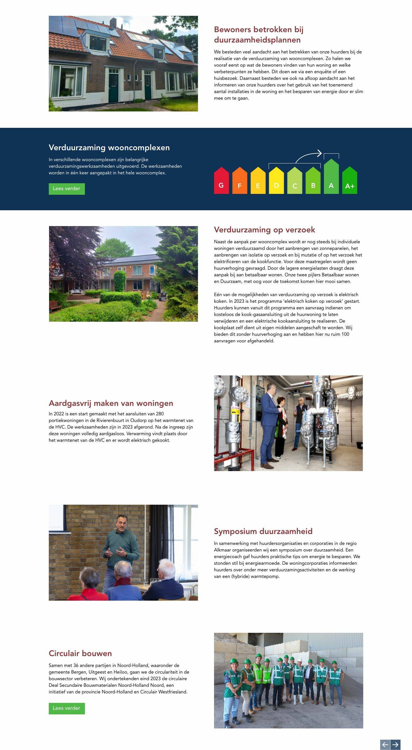In 2024 startten we met het omzetten van koken op gas naar elektrisch koken voor 444 galerijwoningen in de Rivierenbuurt in Oudorp (Alkmaar). Dit project is in de zomer van 2025 afgerond. De woningen worden verwarmd via het HVC‑warmtenet en zijn nu volledig gasloos. Eind 2025 waren ongeveer 1.750 woningen van onze totale voorraad aardgasvrij.