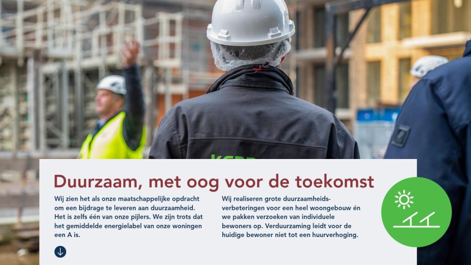 Wij zien het als onze maatschappelijke opdracht om een bijdrage te leveren aan duurzaamheid. Het is zelfs één van onze pijlers. We zijn trots dat het gemiddelde energielabel van onze woningen een A is.